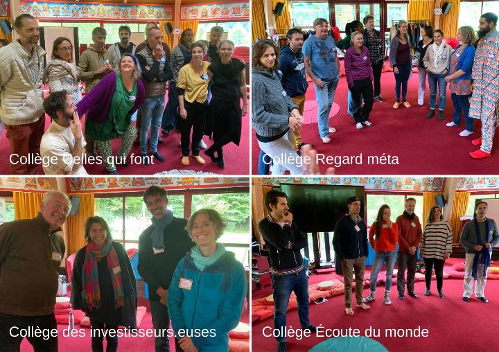 L'un des objectifs de cette AG était de permettre aux sociétaires de se rencontrer, de « créer un Nous », de vivre une expérience immersive mélangeant cœur, corps et esprit. Il était aussi important de lancer les quatre collèges de la SCIC UdN, intégrant les différentes catégories de membres :